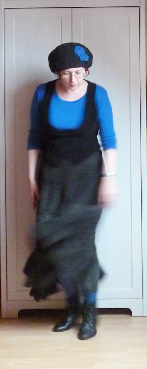 Elvileg nem sok értelme van épp egy ilyen pörgős-forgós képet betenni, ha már őtözködős blogot vezetek, de a mellény, a sapka meg a póló már volt rajtam, a szoknya pedig holnap is ugyanez lesz. Az eredeti cél, miszerint elterelni a figyelmet a nyúzott pofámról, nem jött ugyan össze, de *vállvonás*.