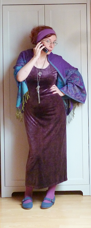 Pedig már olyan szépen kitaláltam jó előre, mivel fogom bántani a vendégeim szömit. Eh, mindegy, így is felveszem. Ki mondta, hogy tükörbársonyba öltözve nem lehet kenyeret sütni. (A nyakamból lelógó nagy firlefancot azért majd leveszem hozzá.)