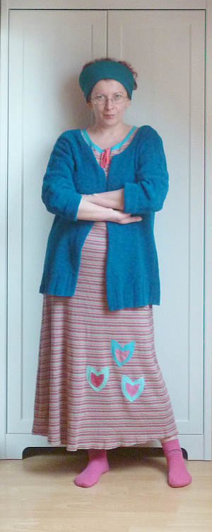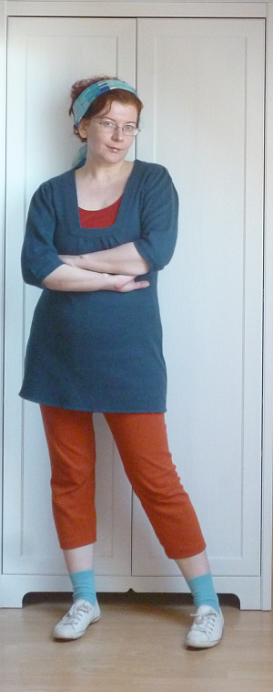 Másrészt meg úgy érzem, még mindig rengeteg kihasználatlan lehetőség üldögél a szekrényeimben szétszórva, és jóval kisebb kihívás egyszerűen csak bemenni egy boltba, és szerezni valami új (esetleg használt, de nekem-új) holmit, mint a régieket variálgatni. Ha már megvannak, legalább kezdjek velük valamit, vagy legalábbis lássam be, hogy úgyis csak a helyet foglalják, és szabaduljak meg tőlük. (Ez sajnos több okból sem megy könnyen, de továbbra is dolgozom rajta.)