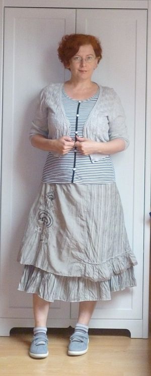 (SK: a pulóverből-kardigán és a szoknya.)