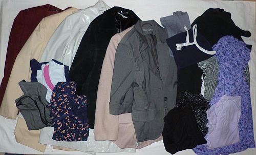 És mivel megígértem, hogy minden ruhadarab, ami besétál az ajtón, szembetalálja magát három hasonló típusú, a lakásból kifelé tartó ruhadarabbal, tessék, ezek távoznak – három ruha, kilenc póló meg hat zakóféle (a hat cipőfélét nem illusztrálom, vissza lehet keresni, hogy tizenkét darab döglött le ilyen-olyan okból rólam idén, úgyhogy még két párat szerezhetnék is magamnak, ha lesz miből). Az egyik zakó meg két ruha még a kimaradtakból is kimaradt, annyira megfeledkeztem róluk.