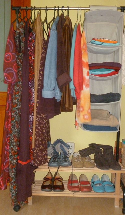5. Ha a hónap során valamelyik darab igazán és helyrehozhatatlanul tönkremegy, egy hasonló darabbal helyettesítem. (Cipőt cipővel, szoknyát szoknyával, satöbbi.) Ez lehet új, vagy lehet a már létező készlet része, ahogy adódik.