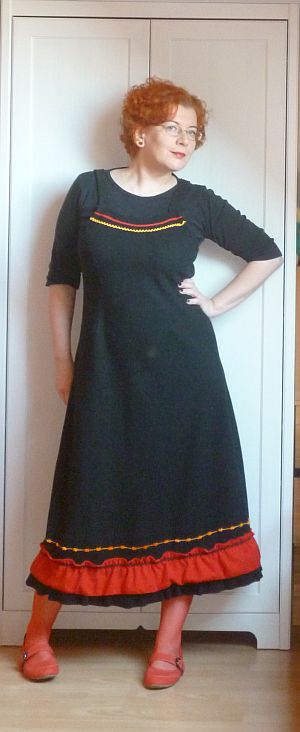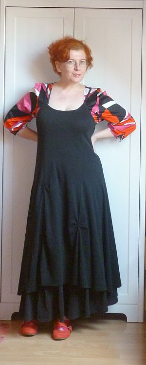 Új egy fenét. Épp csak még nem lépett fel ezen a blogon, mert békésen ücsörgött a pincében azóta, hogy kiturkáltam magamnak, és azt várta, hogy valaki csináljon valamit a nyakkivágásával. Eredetileg afféle szembehólos dekoltázsmegoldása volt, és konkrétan úgy néztem ki benne, mint egy szoptatósdajka.