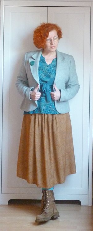 Valamivel több mint tíz éve vettem magamnak két béleletlen, rugalmas kord szoknyát a Jeans Clubban – az egyik praktikus barna, a másik praktikus fekete, a leárazáson ezerötszáz forintba fájt darabja, ráadásul mind a kettőhöz járt öv is, rojttal meg pitykével, ahogy ezt köll. Hordtam is mind a kettőt eleget, sőt a szoknyáktól függetlenül az öveket is – igaz, főként a blog előtti időkben jutott nekik több rivaldafény, de azért így is össze tudtam vakarni egynéhány esetet. (Az utolsón persze csak a rojtos-pitykés fekete öv teszi tiszteletét.)