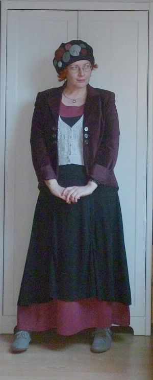 Varrjunk, persze. A felhívás ugyan elsősorban kötött vagy horgolt darabokra vonatkozik, és én tudok mindkettőül (úgy-ahogy), de sokkal szívesebben fordulok a varrógépemhez, mint kötő- vagy horgolótűkhöz. Kötőtű, asszem, tán nincs is a házban, a kötőtudásom örökre megmaradt az alapoknál, sima meg fordított, apasztás, bővítés, némi rudimentáris norvégminta, slussz. Horgolásban valamivel jobb vagyok, de aligéppen. Emellett ráadásul mind a kettő az én előadásomban lassú és szöszmötölős tevékenység, a szabás-varrás meg ripsz-ropsz megy. Meglehetősen türelmetlen vagyok az ilyesmikben, és szeretem a gyors eredményeket. A rátétmunka meg a patchwork más, ott direkt jólesik szöszmötölni, de a ruhadaraboknál rendszerint a könnyen kezelhető anyagok és szabásminták felé szoktam elcsábulni, nem vonz az aprólékos, finom szalonmunka.