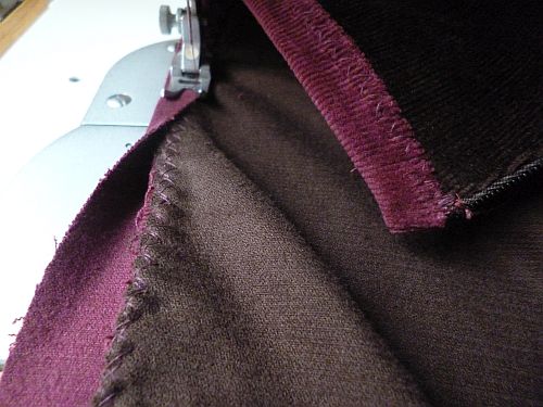 Három dologra hívnám fel itt a figyelmet. Az egyik, hogy ez a nyomorult darab S-es méret (nem csoda, hogy szűk a dereka!), a másik meg az, hogy ha kordot akartok varrni, rögtön a nyisszantás után szegjétek el géppel cikcakkal, undormányosan morzsálódó anyag. (Kordanyag varrását mindig porszívózás előttre időzítem, fő a praktikum.) A harmadik a cipzáron a fényben megcsillanó kis pücőke közvetlenül a vágás mellett. Ez akadályozza meg, hogy a cipzár kocsija (vagyis a húzókás rész) lecsússzon. Ha nincs a cipzáron ilyen pücőke, akkor az első dolgom gyorsan rávarrni egy kicsit a gombvarró programmal, mert ha lecsúszik a kocsi, akkor a büdös életben nem gyömöszöli vissza az ember.