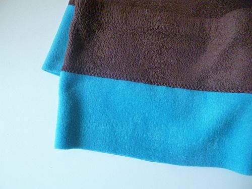 Meséltem már arról, hogy egyre kevésbé kedvelem az épp csak térd alá érő darabokat. Ez ugyan kicsikét hosszabb annál, de nem eléggé, úgyhogy nem csak díszíteni akartam, hanem hosszabbítani is. Ilyen átalakításokkor mindig arra törekszem, hogy úgy fessen a végeredmény, mintha nem csak afféle utólagos hozzápótolgatások jelentek volna meg a ruhán: ha tehetem, nem az aljára varrok fel egy plusz toldást, hanem megpróbálom beleilleszteni magába az eredeti darabba. Úgyhogy ezúttal is levágtam a ruha aljáról egy tenyérnyi széles csíkot, majd kiszabtam egy hasonló széles csíkot égszínkék polárból.