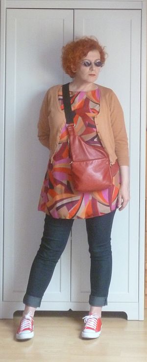Ahhoz ugyan vajmi kevés energiám van ezen a héten, hogy gondos munkával és megfontolással áutfiteket tervezzek a bloghoz, nagyrészt átabotában hajigálom fel magamra azt, amit éppen előrántok, de ma végre olyan időjárást jósolnak, amihez meg fog felelni ez itt, ami rajtam van. Már a múlt hét elején összeraktam egy vállfára, de sose volt lehetőség felvenni, mert hol túl hideg volt hozzá, hol túl meleg, hol pedig éppen kilfelden finteregtem. Hát akkor most hajrá, Mari néni.