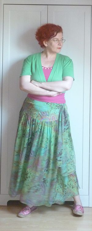 Állítólag ma lesz az év utolsó olyan napja, amikor “harminc fölé kúszik a hőmérő higanyszála”, bár a meteorológusok továbbra is mókás emberek, akiknek mintha csak részeg kecskebékák súgnák meg, mikor milyen idő lesz, és minden bizonnyal mindegyiknél van egy közhelyszótár. (“Higanyszál” aujnye. Az már emberhőmérőben is alig akad, nemhogy léghőmérőben.) Mindenesetre ha harminc fok, akkor harminc, nesztek kánikularuha, ami amúgy a százféleképpen felcsomózható száriszoknya egyik verziója a százból, ideje volt így is kipróbálni egyszer.