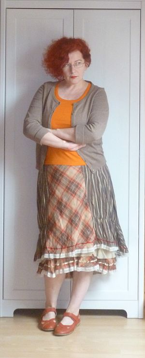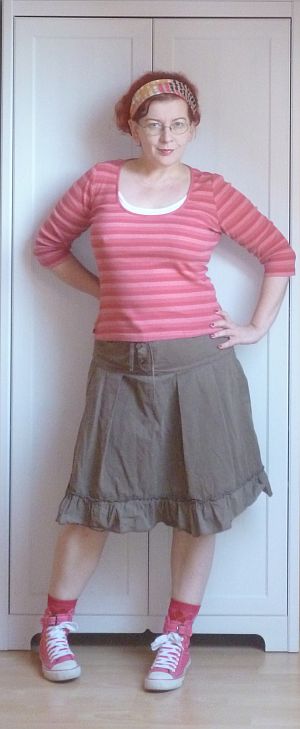Hogy kevésbé poétikus vizekre evezzek: még a nyáron alakítottam át ezt a szoknyát két számmal kisebbre az eredeti változatánál. Ha érdekel valakit a folyamat, tessék jelezni, megvan hozzá a komplett fotódokumentáció, csak meg kell írni a bejegyzést.