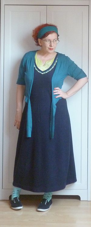 Mint ez rendkívül stílusos öltözékemből is látható, ma itthoncsücsü napom lesz – sőt, az órarend izgalmas változásai és trükkjei miatt meglepetésemre még a hétvégém is itthoncsücsü lesz, pedig nem ez volt az előrejelzés. Nem baj, no, meló van éppen elég, konferencia-előadás írásától (nincs kedvem hozzá) szöveggyomláláson át (ehhez sincs kedvem) ruhavarrásig (öö, mondanom se kell). Ez utóbbit amúgy is muszáj lesz befejeznem ma meg holnap, vasárnap reggel ugyanis a Repülő Kutató távozik Prága irányába, és vinnie kell magával a kész terméket. (Tényleg rohadtul nincs kedvem megvarrni azt a ruhát. Bocs, Poett.)