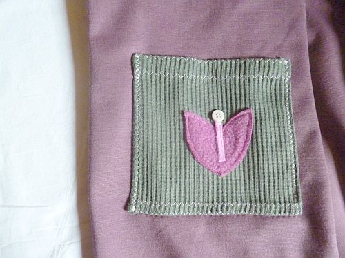 A zöldből terveztem a felsőrészt, a mályvából meg az alját. A nyuszi darabjait polárból vágtam ki,