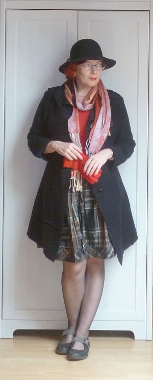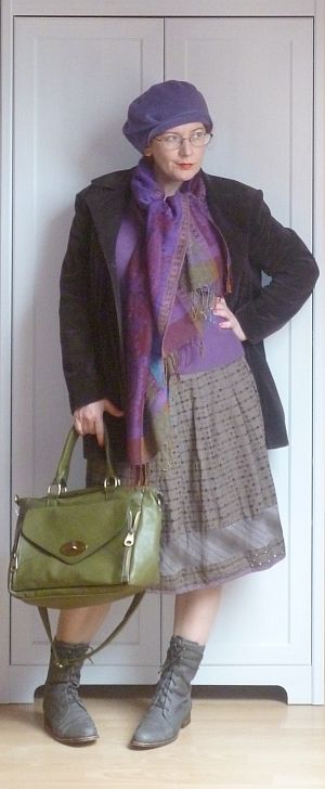 Oké. Megírtam a bejegyzést (még öltözködés előtt – szoktam néha ilyet), aztán felmentem a szekrényhez, dilinyós holmikat vadászni. Ó, de régen hordtam utoljára ezt a táskát, gyere szépen a mamához, aztán meg, hohó, évek óta nem volt rajtam ez a bársonyzakó sem.