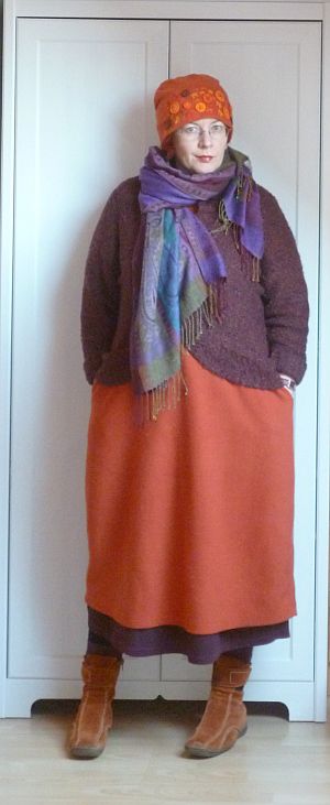 A héten amúgy már varrtam magamnak két ruhát meg három sapkát, és ehhez most még hozzá fog csapódni egy pulcsi meg egy szoknya, ha minden jól megy. Egyébként is rettenetesen elegem lett abból, hogy a hidegre való tekintettel folyvást úgy festek, mint egy Michelin-gumibaba, úgyhogy ismét elharsogtam az “eddig és netovább”-ot. Ma még varrós házicucc, aztán holnaptól megpróbálok olyan holmikat felvenni, amiben nem látszom fagylaltgombócnak. Még mielőtt elfelejteném, hogy van nekem valahol a harminc réteg alatt egy úgynevezett derekam.