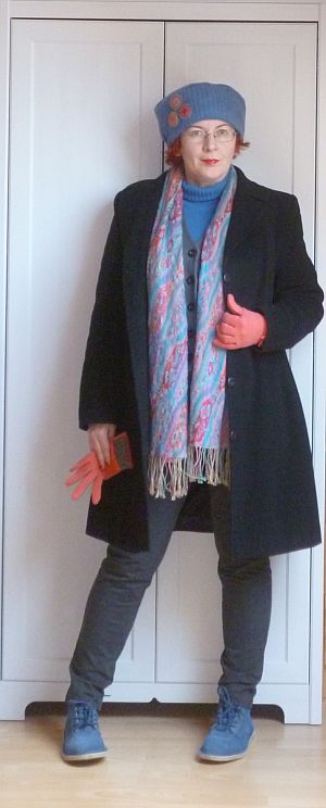 A fejemen a szombaton is hordott biliszerű sapkalap látható, lábilag pedig kísérletet teszek arra, hogy az új kék cipőkéim közül beüzemeljem a bumfordabbikat. Lássuk, hogyan teljesít.