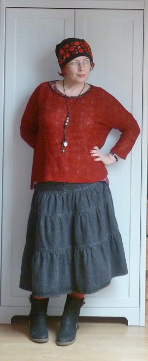 Mindenesetre a végeredmény ez lett, én meglehetősen büszke vagyok rá – végül is bekerülési költségen körülbelül 1500 forintba fájt, ha nem számolom a már meglévő alapanyagokat és eszközöket, valamint a ráfordított időt, márpedig nem számolom, még csak az kéne. Ráadásul még megmaradt a kabát majdhogynem fele, abból is lesz valami, csak győzzétek kivárni.