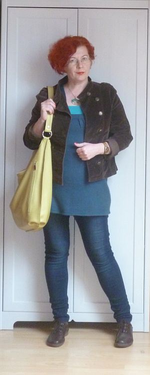 Én is eléggé össze vagyok cammantva, a “mit-kezdjek-veletek” kupacból mára ez a hosszú pulcsi jutott, aminek háromnegyedes ujja van, és ahányszor feleszem, mindig újra kell terveznem az áutfitet, mert szinte kivétel nélkül úgy festek benne, mint egy fatönk. Eh, mindegy, a bumszli cipőhöz így is jó lesz, ma megint hosszan szelem át a réteket óvodától óvodáig, és annyira nem volt hangulatom válogatni a holmijaimban, hogy én őtözködős bloggerek szégyene ugyanazzal a táskával megyek, mint tegnap. Skandalum.