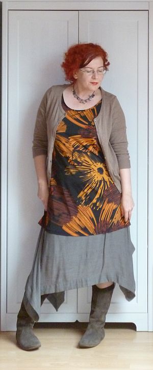 Egy sálat is akasztok még magamra mindehhez, de ahhoz le kellett volna mászni a földszintig, majd vissza. Inkább képzeljétek el. Egy olyan szürke izé lesz.