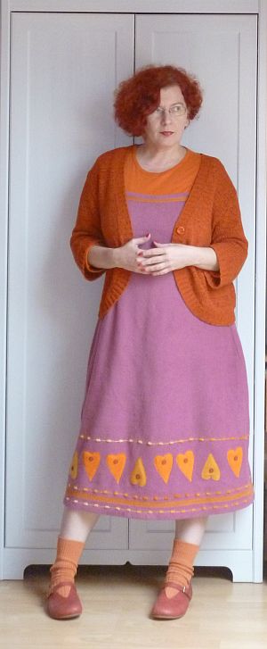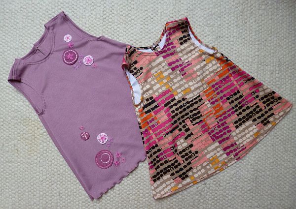 Ja, pontosan mint Malvinka a Kincskereső kisködmönben. Nemigen jutok hozzá ahhoz, hogy varrogassak, de ezúttal inkább ezt csináltam, mint mást, mert ennek minden bizonnyal több haszna lesz. Gyakorlatilag nincs annyi holmi, amit egy Giggü korú hölgy el ne szaggatna vagy ki ne nőne, úgyhogy összeütöttem neki gyorsan kettő ruhát pikk-pakk. Eredetileg persze megjárta a fejem az is, hogy mekkora poén lenne varrni neki egy komplett készletet, melyből mindegyik darab Bari rohadék kis barátai közül fog egyet-egyet illusztrálni, de persze időm arra nem vala, szóval ennyiben maradtunk. Sebaj, így is ő lesz a legegyénibben öltözött példány a Nagy Lapos Mezőváros bölcsijében.