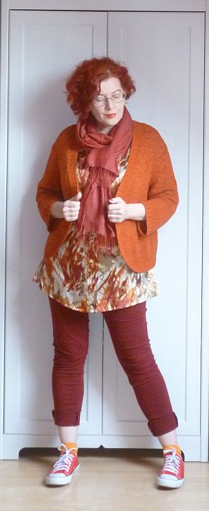Ennélfogva ma tovább kuksolok, mivel viszont ez mégiscsak egy őtözködős blog, beőtöztem hozzá őszi mezőnek, és ki is pintyöltem magam.
