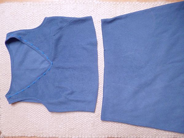 A ruha felső részével egyelőre nem cicóztam sokat, behajtottam a vágott szélt, aztán széles cikcakkal elszegtem.