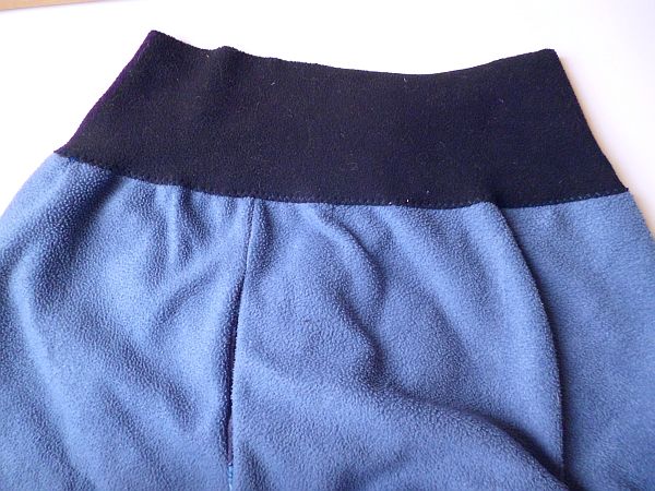 Most már csak a derékpántot kellett megoldani. Lehetett volna szűkítőkkel meg cipzárral, de ezúttal lusta voltam. A végtelen készletekben volt egy valamikori eská polárszoknyáról levágott derékrész. (Talán a Kamilla-sapka alapanyag-szoknyája volt az? Passz.)