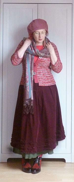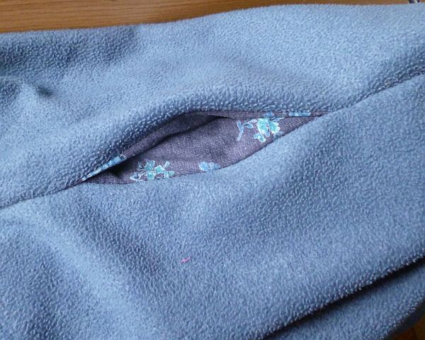 Most már csak a derékpántot kellett megoldani. Lehetett volna szűkítőkkel meg cipzárral, de ezúttal lusta voltam. A végtelen készletekben volt egy valamikori eská polárszoknyáról levágott derékrész. (Talán a Kamilla-sapka alapanyag-szoknyája volt az? Passz.)