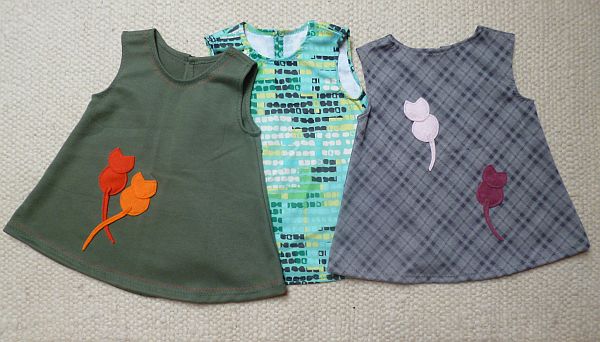 Azt nem mondhatni, hogy Giggü le lenne rongyosodva, de a tavaly varrt ruhák az elhasználódás/kinövődés többé-kevésbé előrehaladott fázisaiban vagynak, szóval most varrtam neki tegnap du meg ma reggel további hármat.