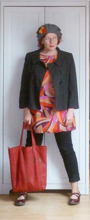 A varrás legnagyobb bibéje az volt, hogy controlfreak nagynéni/hobbivarrónőnek lenni szívás, különben is mit szól Mucsa-Külső-Szentkáta népe, ha elbaszarintom a darabot, úgyhogy a “kétszer mérj, egyszer vágj” alapelv nálam “háromszor mérj, jelöld újra, egyszer vágj sopánkodva, aztán cöccögve nézegesd” változat formájában valósult meg. A legelején még azt is megnéztem az anyag egyik csücskén, mivel tudom a szabásminta-vonalakat külsérelmi nyom nélkül bejelölni, úgyhogy, ha esetleg ilyesmit akartok varrni, előre szólok, hogy a lila Prym illanófilc nem illant el róla, a piros és kék szabóceruza nyomát pedig csak maszatolva lehetett kitörölni. Az egyetlen működő megoldás a fehér szabóceruza volt, úgyhogy az még külön bulit jelentett, mikor a fehéren fehér vonalak nyomán próbáltam összevarrni a szűkítőket a mellrészen plusz annak batisztbélésén.