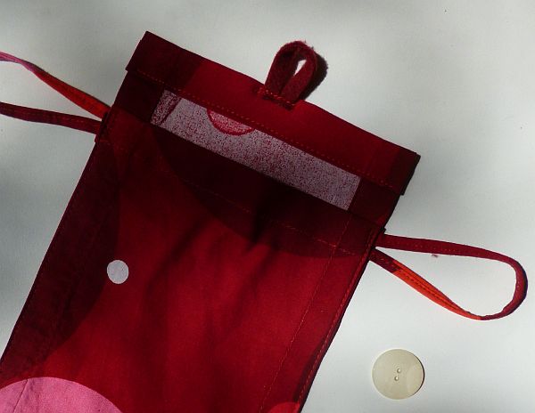 Remélem, teccikérteni, mert most már inkább mutogatni fogom, mik történülnek, mintsem hogy verbalizáljam. Például színre lép az emlegetett madzag, kettévágódik, majd jobbról-balról belevarródik a tokocskát kialakító varrásvonalakba,
