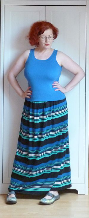 Ha a szoknyát felfordítanád, és az aljából varrnál össze vállnak, lehetne egy kvázi denevérujjú tunikád-miniruhád. 🙂