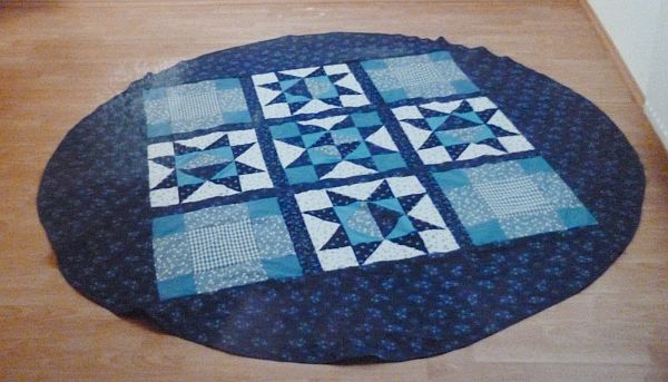 Mielőtt megjött Atilláné, jómagam is megpróbálkoztam egy kicsiny tatárdúlással, melynek következtében egy rég nem piszkált dobozból előkerült két fotó a 2000-as évek legelejéről, de legkésőbb 2003-ból. Igen, azokból az időkből, amikor még varrtam patchworköt. Például abroszt. Kettőt is. Megbízásba ment, és még pénzt is kaptam érte, már nem emlékszem, mennyit. Valószínűleg nem volt túl sok, de nem is azért csináltam, hanem hogy lássam, tudok-e én ilyet.