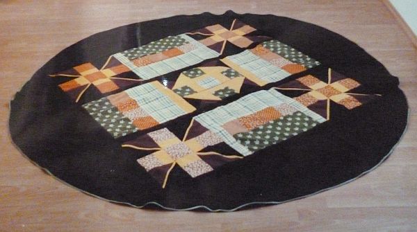 Mielőtt megjött Atilláné, jómagam is megpróbálkoztam egy kicsiny tatárdúlással, melynek következtében egy rég nem piszkált dobozból előkerült két fotó a 2000-as évek legelejéről, de legkésőbb 2003-ból. Igen, azokból az időkből, amikor még varrtam patchworköt. Például abroszt. Kettőt is. Megbízásba ment, és még pénzt is kaptam érte, már nem emlékszem, mennyit. Valószínűleg nem volt túl sok, de nem is azért csináltam, hanem hogy lássam, tudok-e én ilyet.