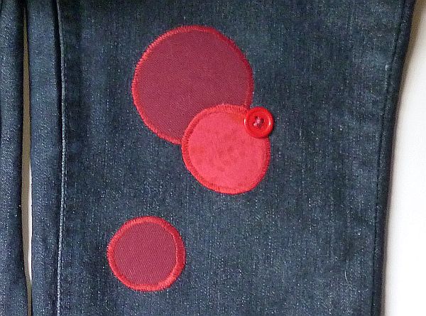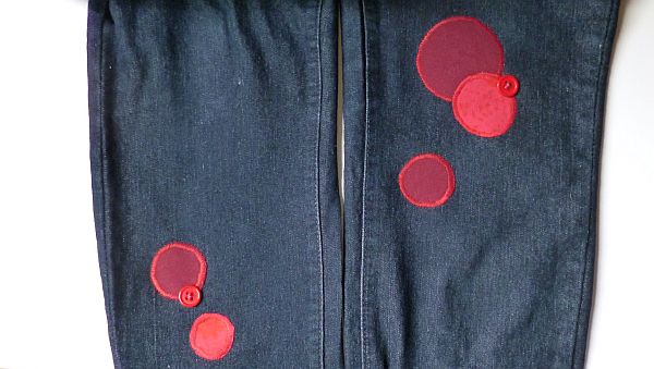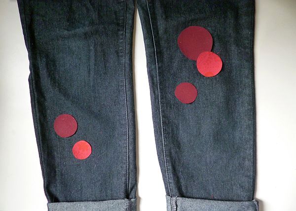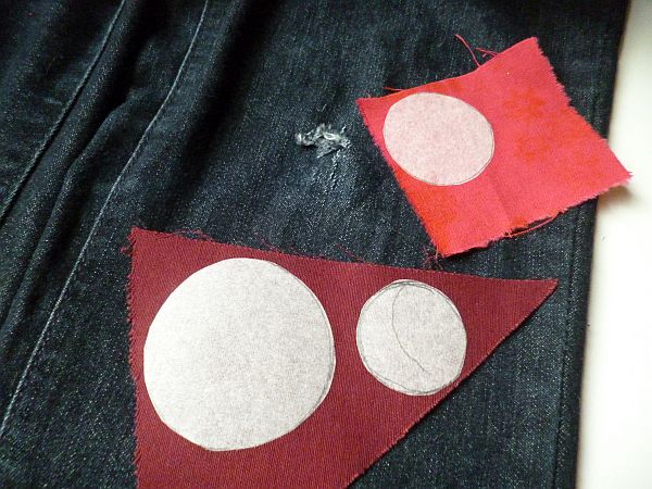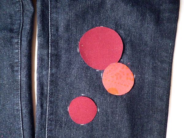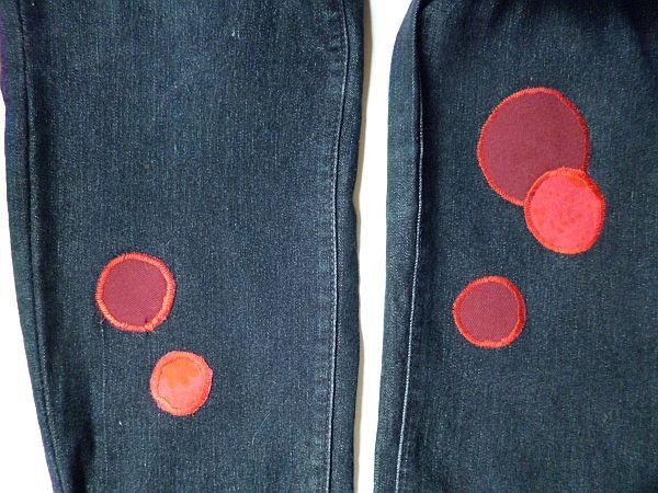 aztán kivágtam a köröket, és a nekem szimpatikus elrendezésben rárakosgattam a nadrágra.