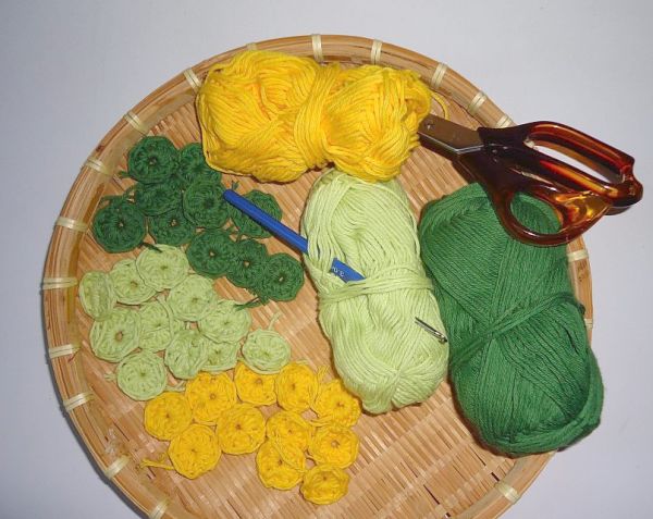 A végén csak a világoszöld és sárga köröket használtam fel, ami azt jelenti, hogy még van egy csomó sötétzöld köröcském további projektekhez, juppijájé. Egyelőre viszont lássuk, mit hoztam ki mindebből.