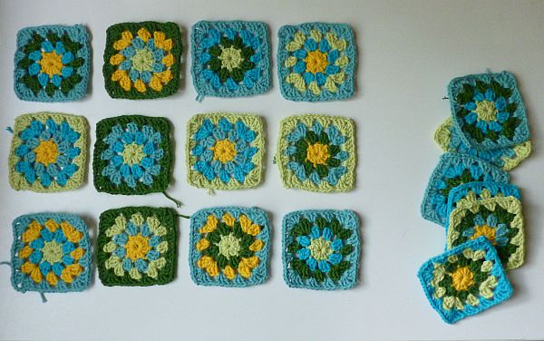 Arra törekedtem, hogy ne legyen két egyforma a nagyinégyzetek között, és végül a kész cuccokból összesen tizenkettőt választottam ki, hogy abból csináljak párnahuzatot. Ravasz és gyakorlott tekintetűek még az elrendezés ritmusának szabályát is láthatják már, ugye hogy látjátok?