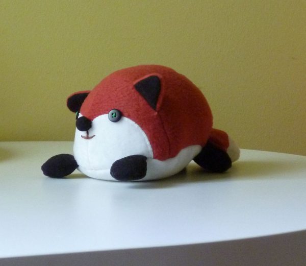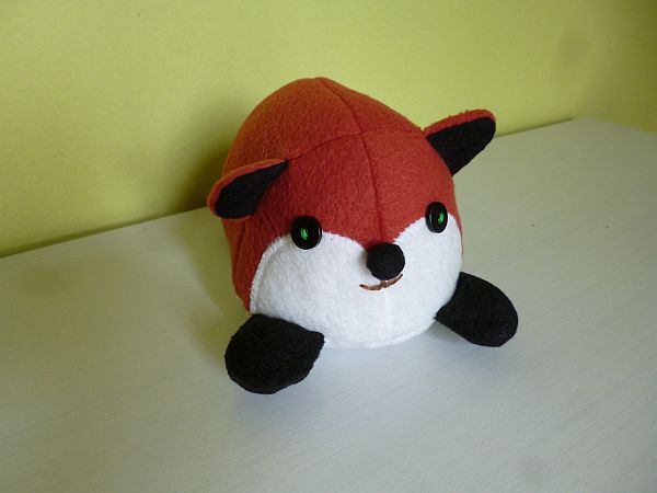 Azon a nyíláson keresztül fordítottam ki a bucit, aztán szintén azon a nyíláson a két hátsó lábat rávarrtam a hasrészre. Erre most jó lenne egy fotó, de nincs. Olyasformán tessék elképzelni, mint az első lábak felvarrását, de nem a róka felső, hanem alsó részére kell hogy kerüljön. Felülre ugyanis a farok kerül. Ez: