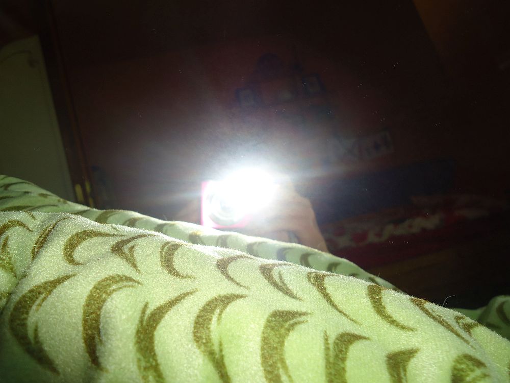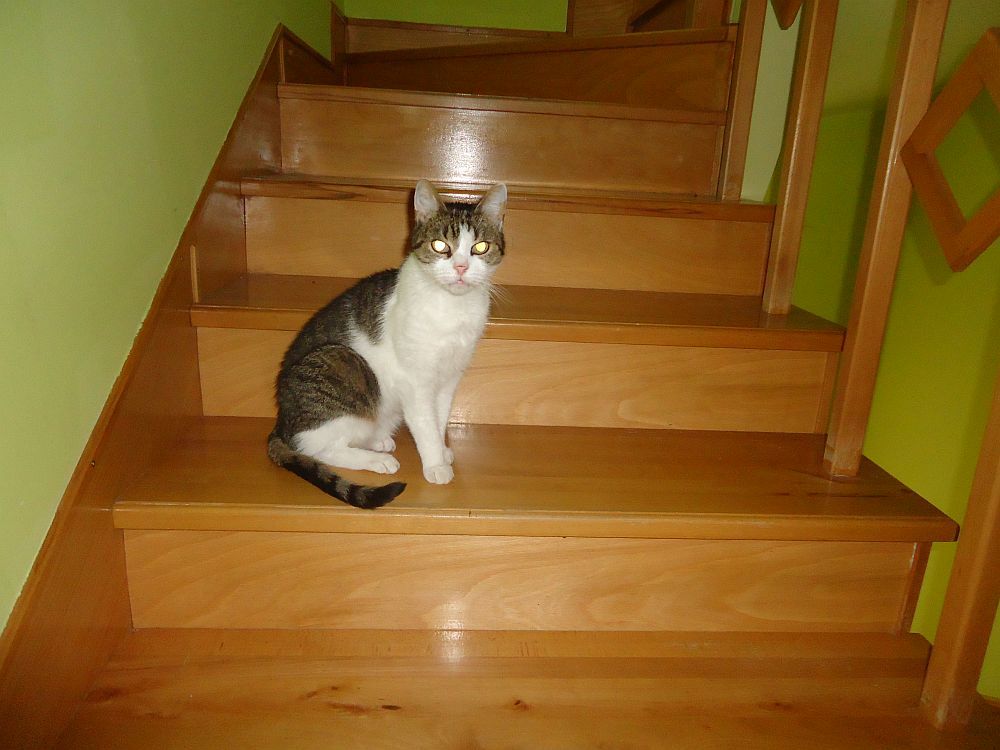 1. Celofán, mielőtt felmenekülne az emeletre, belebámul a vakuba.