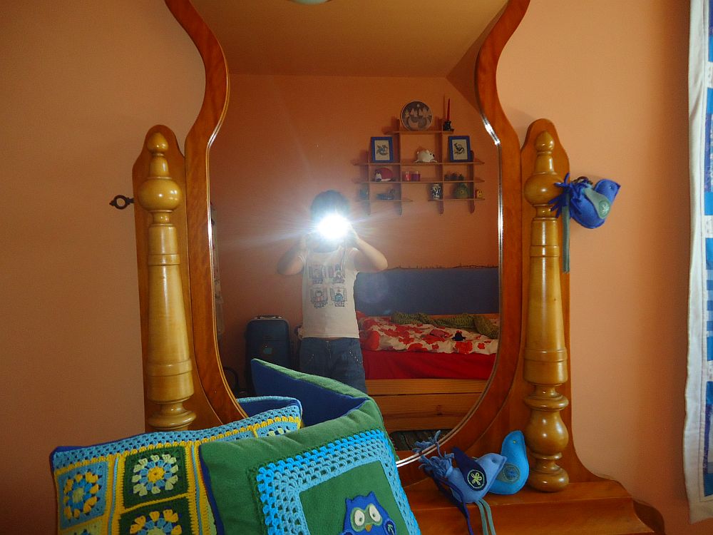 7. Hölgy a másik tükörben, a nagynénje kozmetikumaival, oldalkáosszal és háttérbilivel.
