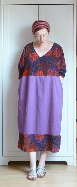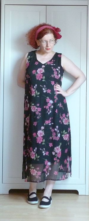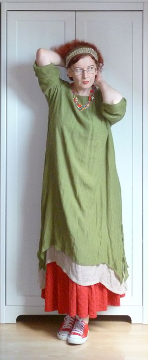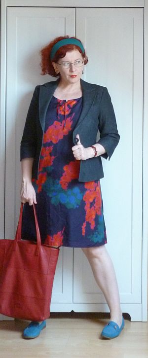 Hogy őtözködős bloggerhez méltó dolgokat is mondjak: most jöttem rá, hogy ez a ruha idén még nem járt rajtam. Valószínűleg megunhattam kicsinyég, no. Kidobni azért még nem fogom. Kívül nem gyűrődős poliészterizé, belül pamutvászon, enni nem kér, kis helyen is elfér, és valaki otthon varrhatta magának a saját két kezével, mert sehol egy címke, sőt, nyoma sincs annak, hogy lett volna benne ilyesmi. Ebben a fröccsöntött világban meg kell becsülni azt, ha valaki beletett ennyi energiát egy holmiba.