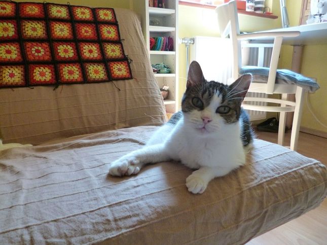 A Bűnök Barlangja nem csak nekem fontos ebben a menazsériában, hanem a négylábú családtagoknak is. Ha megkérdezné őket az ember, és hajlandóak lennének válaszolni, valószínűleg ezt a szobát szavaznák meg a legizgalmasabb helynek az egész lakásból. Amikor beütött a nyár és vele a horgolószezon, ami eddig sose volt, különösen izgi lett bemenni, és megnézni, mit lehetne legombolyítani. Én persze gondosan elzárom a fonalakat, de a macskák tisztában vannak azzal, hogy vannak fonalak, úgyhogy ötdekás agyukban ez piszok nagy árulásként van elraktározva, mellyel mindenféle jogos bosszúknak nyitottam ajtót, és magamra vessek, ha ez a jogos bosszú lesújt rám valamely váratlan irányból. Ma reggel például egy alsó varrógépspulnit találtam meg a szuterénben, a róla lecsongolygatott cérnát pedig a Bűnök Barlangjában, a folyosón, a lépcsőn, a konyhában, a nappaliban, az előszobában, valamint az alagsorba vezető lépcsőn. Mielőtt valamelyik szőrös disznó (valószínűleg Poci) elindult volna vele felmérni a lakást, ez egy tökig töltött spulni volt. Mire befejezte, maradt rajta összesen két méternyi cérna. Varnyúk nézzék csecsebogyónak a szemeteket, hát lopom én a cérnapénzt? Grr. Ráadásul mivel a bűntudatra minimális affinitásuk van, leszidni se lehet őket, mert csak néznek nagy szemekkel, hogy miva, miva, miva, aztán felmásznak mellém a kanapéra, hogy fésüljem meg őket. Úgyhogy ma reggel már eltávolítottam belőlük kétmaréknyi szőrt. Ennyivel is kevesebb jut a szőnyegekre meg kanapékra, no.