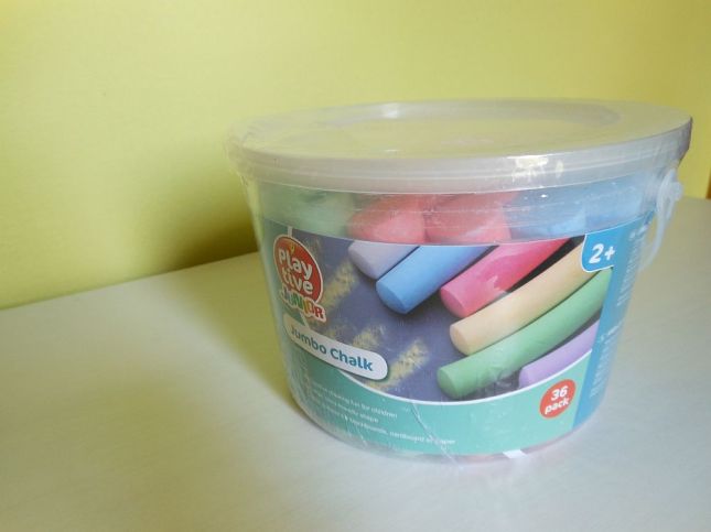 Minekutána a szomszédban már órák óta készülődtek az említett izénapra, némiképp elszégyelltem magam, és nekiláttam összecsapkodni valami személyesebbet az ünnepeltnek. Túlzásba persze nem vittem, de itt volt az ajándékba szánt “egyszer kelljen, s jó, ha van” dobozban egy vödör aszfaltkréta is, ilyen, ni.