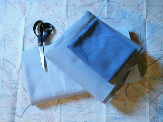 A kékből már egy pólóra se volt elegendő, a másik kettőből meg volt ugyan bőven, de ezt az anyagot sose szerettem nagyon. Tesztdarabnak pont jó lesz.