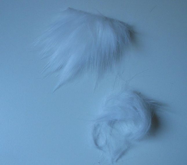 Az a műszőrme, aminek én birtokába jutottam, trikotázsanyagra van rádolgozva, a szálak egy irányba tartanak rajta (semmi torzonborzi), és vedlik, de úgy, mint a két macskám együttvéve.