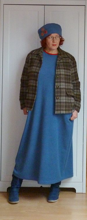 Azt hiszem, a blog olvasói eddigre összerakhatták maguknak, hogy szabásminták, de különösen házilag összeácsolt ruhák esetében én olyan kiszámítható és eccerű vagyok, mint a pof. Ami nem valósítható meg trikotázsból, max. egy nap alatt, cipzárak-gombok és más záródási megoldások nélkül, azzal csak szökőévente egyszer foglalkozom. Ennek egyik folyománya az is, hogy amikor azt mondja a ruharecept, hogy “könnyű, vékony anyag”, akkor én azt úgy fordítom le, hogy “vékony pólóanyag”; amikor azt, hogy “közepes vékonyságú, jó tartású szövet”, azt úgy, hogy “vastagabb pólóanyag”; amikor pedig azt mondja, hogy “vastag, puha szövet”, akkor azt úgy, hogy “polár”. Ez persze még hobbivarrói szemmel is nagy no-no, a ruhareceptekhez nem véletlenül vannak anyagajánlatok, és néha sikerül is elég csúnyán ráfaragnom, amikor kiderül, hogy az adott holmi marhára nem működik rugalmas anyagból, de hát most mit csináljak, lusta vagyok, slussz. Még mit nem közbélés meg cipzár meg alátét meg izé. Éljen a trikotázs.