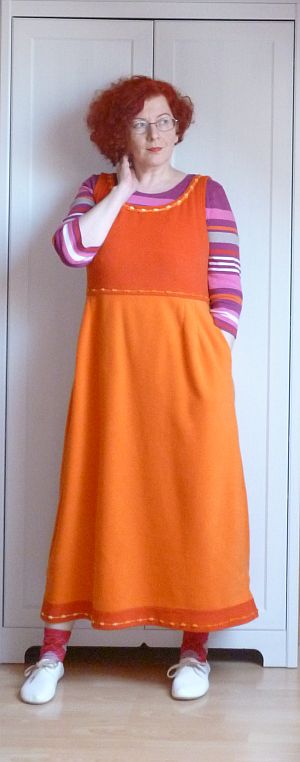 Ez egy igen jó ruha, kényelmes meg nemgyűrődős meg vicces a színe meg az anyaga, de mégis vacillálok rajta, hogy megtartsam-e vagy sem. Talán a kényelmes zsákszabása miatt? Hordok én ennél sokkal nagyobb zsákokat is, de ez valamiért így is, hmm, mégis-mégse. Micsináljak, Blognak Népe? Véleményeket kérek.