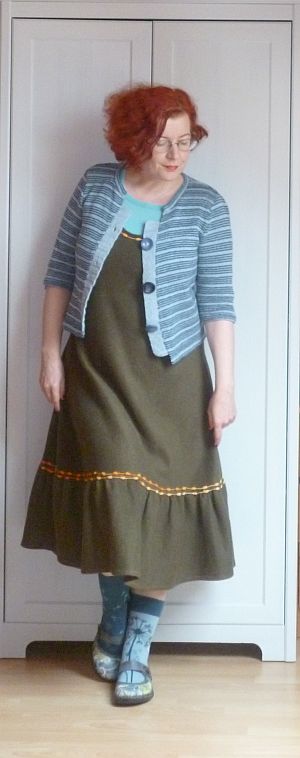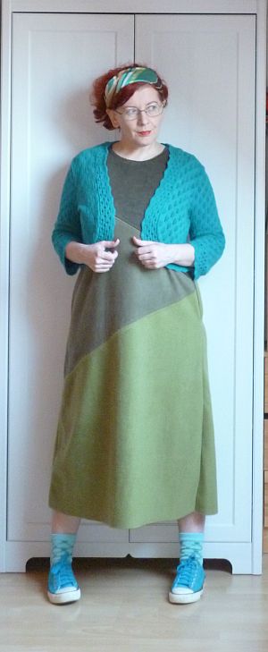 Ez egy igen jó ruha, kényelmes meg nemgyűrődős meg vicces a színe meg az anyaga, de mégis vacillálok rajta, hogy megtartsam-e vagy sem. Talán a kényelmes zsákszabása miatt? Hordok én ennél sokkal nagyobb zsákokat is, de ez valamiért így is, hmm, mégis-mégse. Micsináljak, Blognak Népe? Véleményeket kérek.
