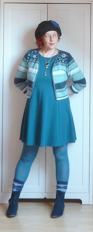 Az elmúlt napok magas sarkon való rohangálásai után ma ideje volt lapos talpú csizmára váltani, mielőtt a lábam leesik a helyéről. Akkor viszont már, mivel ha lúd, legyen döglött, felvettem a pipeződ ruhámat hozzá, sok balti-zölddel, hogy legyen, ami kiüsse az emberek szömit.