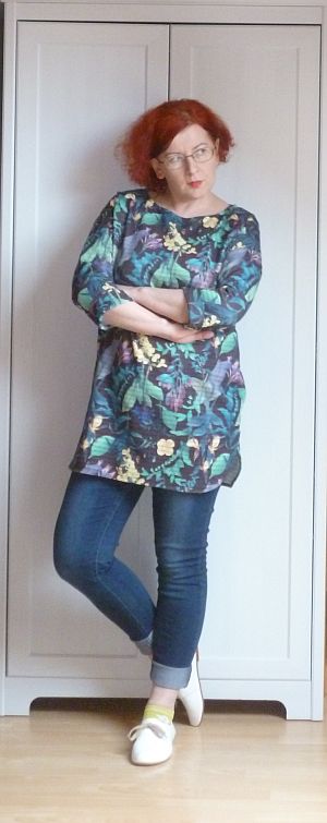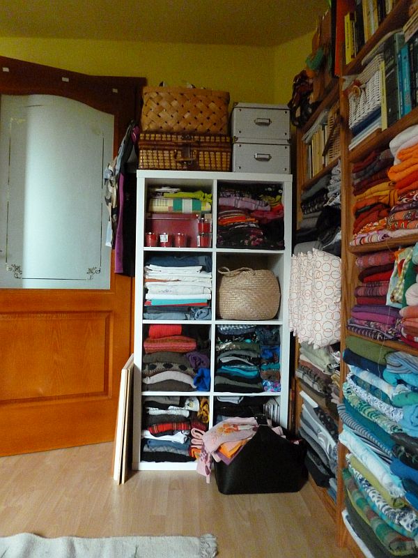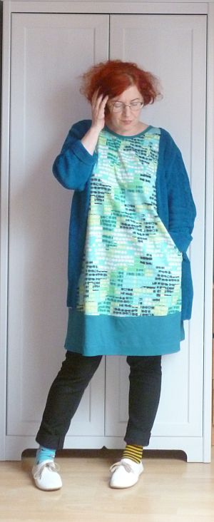 Abban volt egy olyan szabásminta, amit valamikor már próbáltam, úgyhogy gondoltam, újrapróbálom. (Ehhez persze előbb előszedtem az összes már kivágott szabásmintámat, hátha még megvan valahol, de persze nem találtam meg, így újra kellett gyártanom. A szoba ebben a pillanatban már határozottan emlékeztetett egy disznóólra, és ez a későbbiekben sem javult, desőt.)