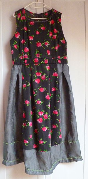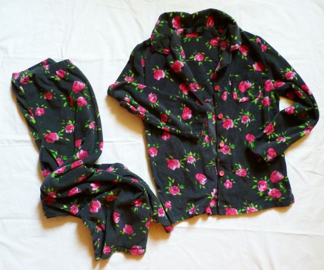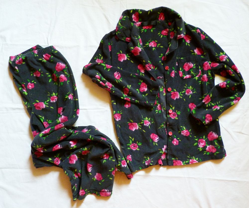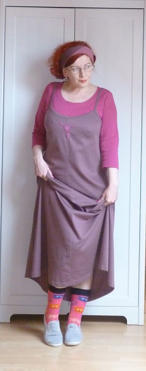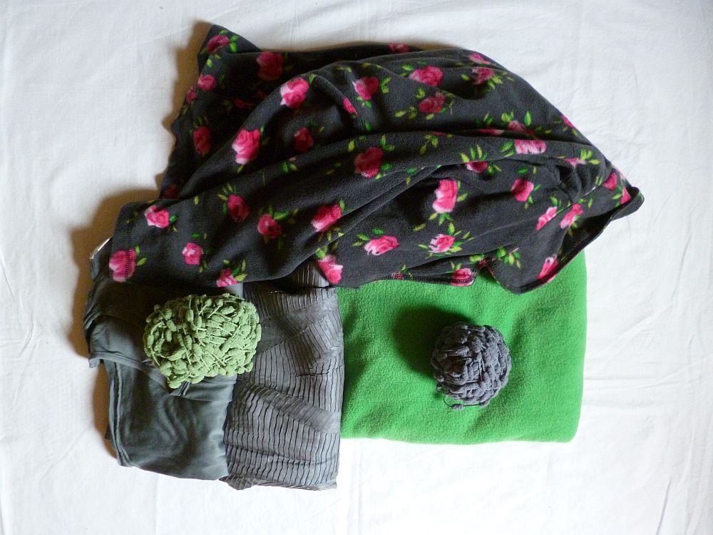 Nyilván a pizsi önmagában semmire sem lett volna elég, úgyhogy hozzácsaptam egy a blog előtti időkből származó poliészter trikóruhát meg egy adag maradék kreppanyagot.